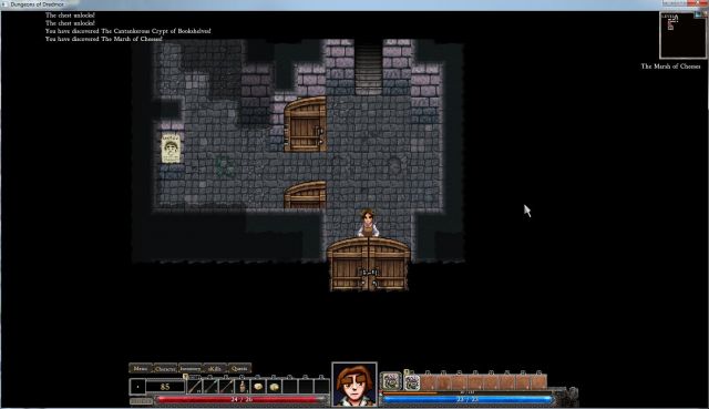 The short text that follows is a journey through less than ten minutes of Dungeons of Dredmor. In case I don’t get around to saying this later, I liked the game (I am beginning to think that if I play a game for more than ten minutes, I probably like it).