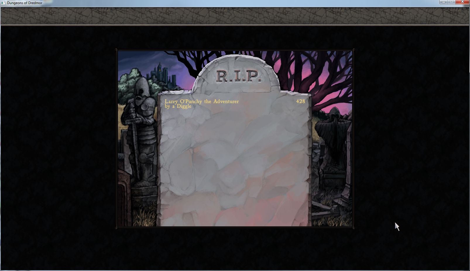 Then something went weird. It was a turn-based blur. Larry might have been surrounded on all sides. In any case, there was a message that basically said “you’re dead.” I clicked something (a wrong something) and then I had a score screen.