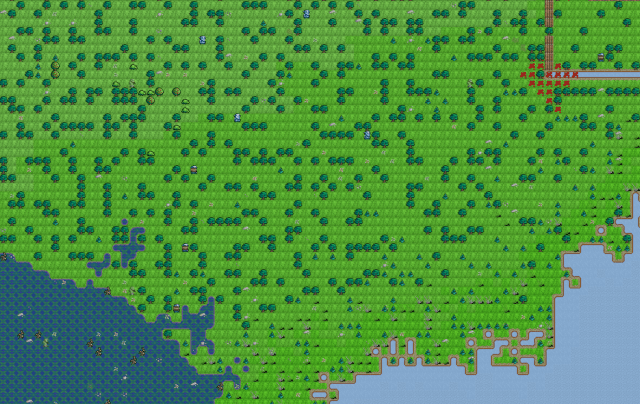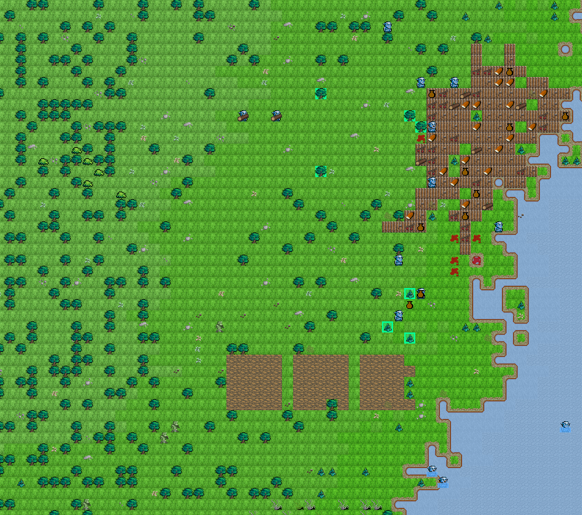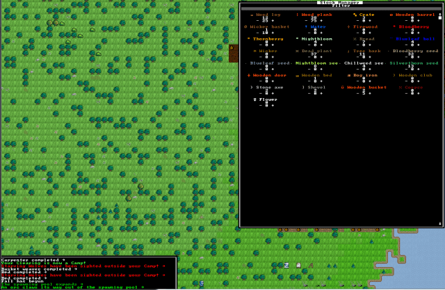 It is the poop and corpses that make Goblin Camp something more than a clone of world management games. The reason is the spawning pit. It begins as a small, one-square, green pit. As the game goes on, your denizens poop, kill, and died–the spawning pit is where all of that goes. Armed with buckets, the goblins diligently take all of the wasteful productions of their society across an expanse of land and then dump it into a green hole.