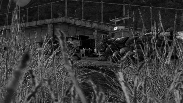 I was playing Fallout: New Vegas this morning and found a strange thing. I found an underpass set up with barricades. There were bodies strewn around, and a few feral ghouls that had obviously moved in like crows after a battle. I saw a small forward operating base with bodies inside; an overpass defensive position was also covered in plasma-weapon armed troops.
