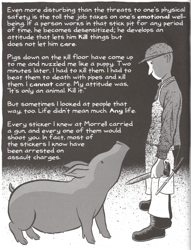 I’m not going to trot out the “power” of words and pictures like everyone does when they talk about comics to a general audience. Just look at this image from J.T. Yost’s “Slaughterhouse Stories” (click through for bigger):
