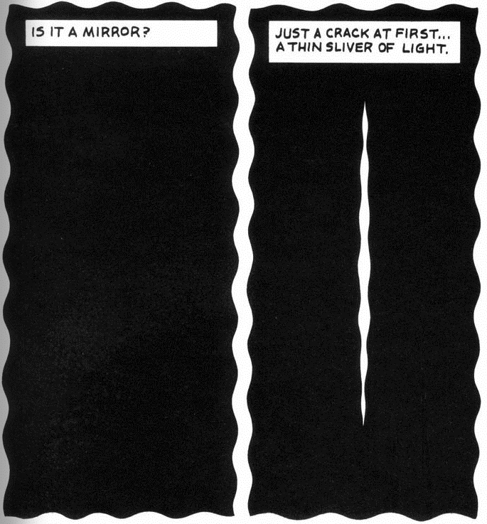 The world of Black Hole could only be in black and white. It could only be about absence and presence. However, it isn’t Manichean. It isn’t about light fighting dark and trying to bring something beautiful into the world. It isn’t a heroic struggle at all. Instead, blackness is the default. The vast, uncaring universe of decay and absence, of nothing-being, is the standard. Life is an anomaly here. What do we find when we see the wound? We see the base reality of things–we see the structure of it all, the ground of being. We see the sucking hole of the real. To quote Ben Woodard, the white on the page is “something that will fill space till the cosmos burns too low for anything to again cohere, ending only in an ocean of putrescence spilling over into the boundless void of extinction.”[3]