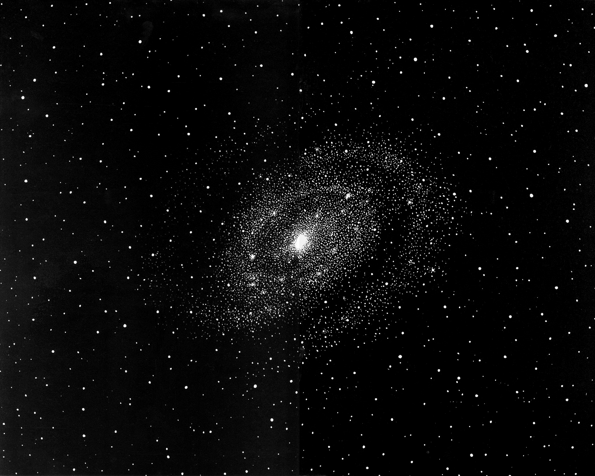 The kids of Black Hole are in there, somewhere. The left spiral arm? And so are we. At the middle of that great unthinkable mass? A black hole, sucking it all in, collapsing in on itself.