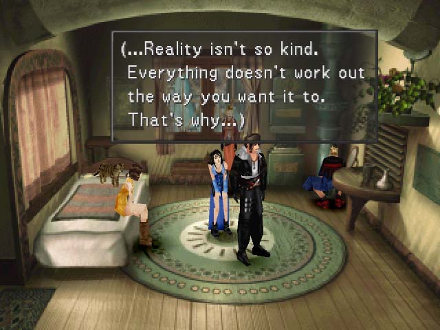2. The point of FF8 could be summed up thusly: “Everything you love will be taken from you. Life is mere palliation.”