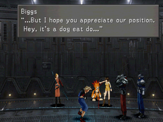 A world of labor, of self-sacrifice and pain, of wasted time in protracted battles–all of that would be nonexistent. The game itself would disappear and the media object would become what it wanted to be the whole time–a film. Not only could the characters escape a world of pain and suffering and bad choices, but we could escape the spreadsheet management that is the junction system. We could just watch.