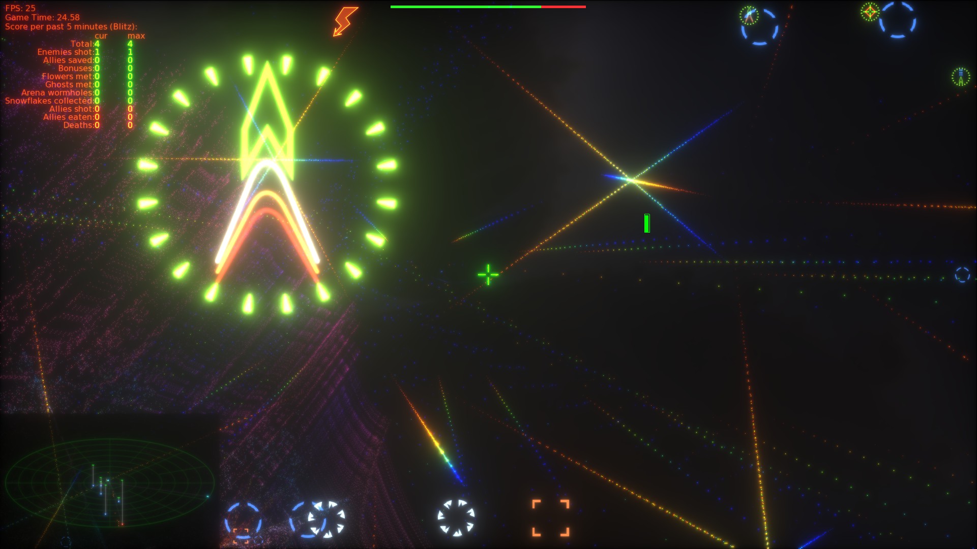 I start the game. I launch into a world with distant glows. They are indifferent to me. They don’t do anything–there is a low technotronica score that doesn’t seem to mean anything. “I thought there would be music,” I think that then a giant black ball with teeth shoots me to death with glowing blue lasers.