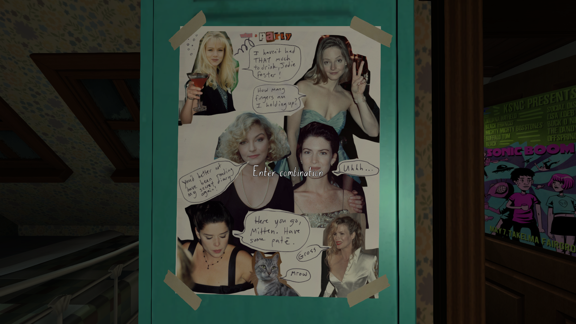 This shouldn’t be so amazing, but in the same way that Dear Esther rethought the very act of walking in a video game, Gone Home rethinks interaction. Everything in the house is there to add to the story, whether implicitly or explicitly. Dad is a failing and flailing novelist who is turning to alcohol often, and we know this through the placement of objects of his in relation to bottles of booze (and the booze in his office, high on a shelf, placed there precariously). Mom is flirting with another man, attempting to have him moved into her local branch office. Kaitlin, the character the player is acting through, was a star student who paved a heteronormative, Eurotrip-having, Upper Middle Class 101 path that younger sister Samantha (Sam) wouldn’t, and couldn’t, follow. All of this is communicated through objects and their relationships to other objects.